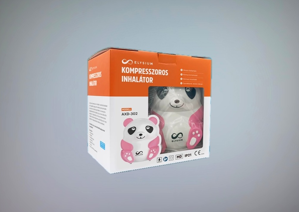 Pink (rózsaszín) Panda formájú kompresszoros inhalátor az Elysiumtól. A felnőttek és gyermekek számára egyaránt alkalmas gyerekbarát készülék hörgőasztma, akut hörghurut és más légzőszervi megbetegedés hatékony kezelésében nyújt segítséget. A porlasztócsészében lévő folyékony gyógyszert apró szemcsékre porlasztja, majd sűrített levegővel juttatja az aeroszolt a légutakba. Az inhalációs terápia egyik legfőbb előnye, hogy a terápiás szer közvetlenül a célzott területre jut el, így gyorsabban és hosszabban fejti ki hatását.