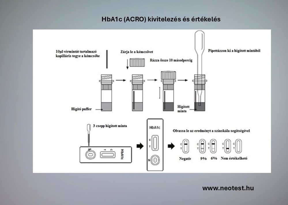 A teszt lehetővé teszi a HbA1c érték gyors becslését teljes vérből, a diabetes mellitus követését.